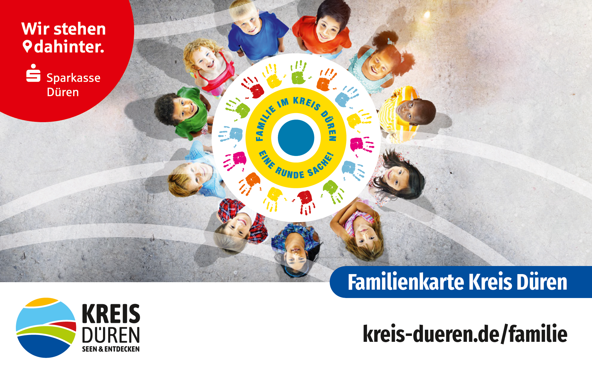 Eltern, Pflegeeltern, Lebensgemeinschaften, Alleinerziehende oder getrennt lebende/geschiedene Elternteile, die ihren Hauptwohnsitz im Kreis Düren und mindestens ein Kind unter 18 Jahren haben, erhalten auf Antrag die Familienkarte.