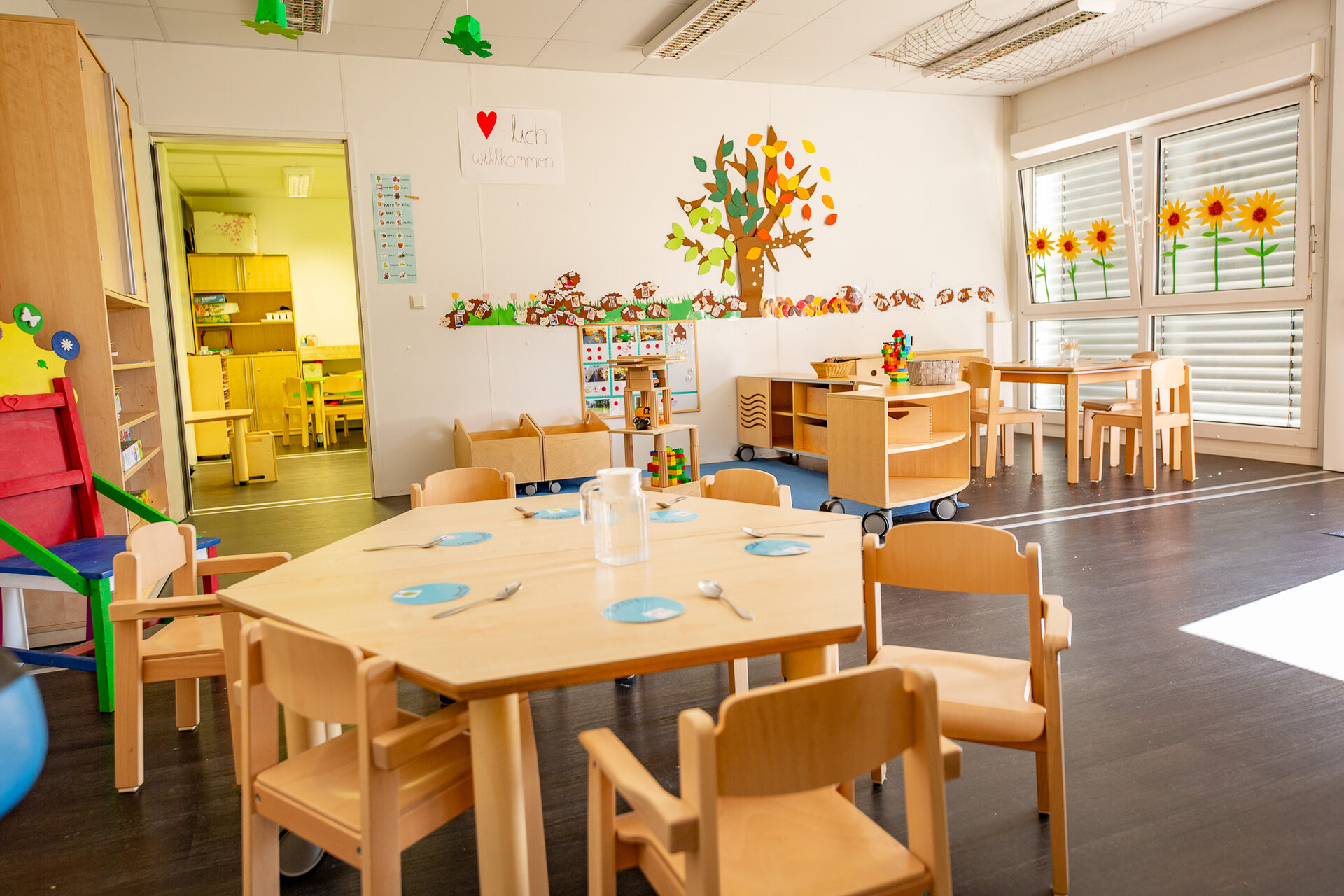 Eine altersgemischte Gruppe ab 1 Jahr bis zur Einschulung sowie eine Gruppe mit Kindern ab 2 Jahren bis zur Einschulung befinden sich in der mobilen Einrichtung. Im Festbau bestehen eine Gruppe mit Kindern ab 3 Jahren und zwei weitere mit Kindern ab 2 Jahren bis zur Einschulung sowie eine Gruppenform mit Inklusion.
