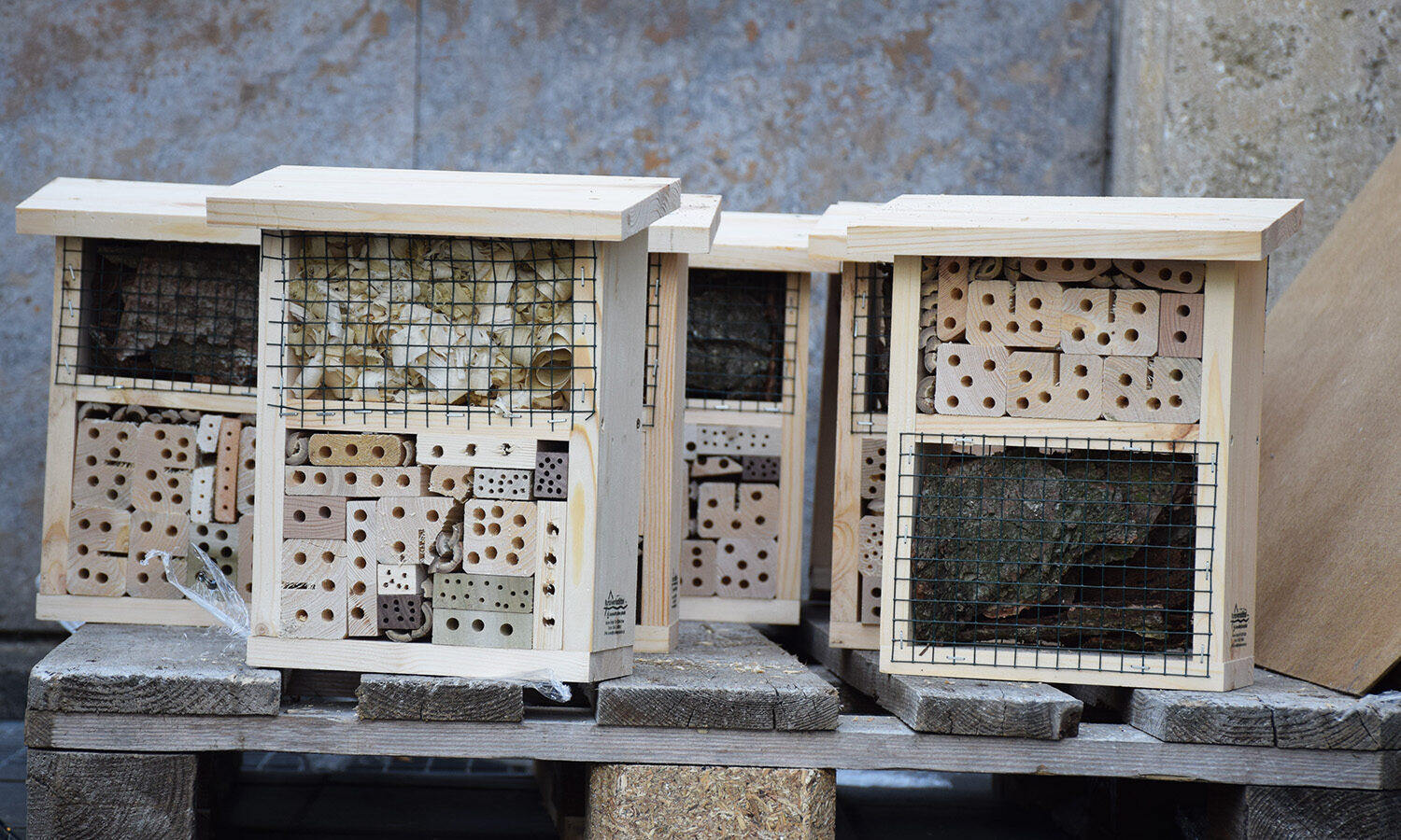 Insektenhotel: Sie suchen noch ein Geschenk für einen Gartenliebhaber? Dann ist vielleicht unser Insektenhotel etwas für Sie. In Kooperation mit den Rurtalwerkstätten in Düren sind hochwertige und massive Insektenhotels hergestellt worden und diese können gegen Abgabe eines Kostenbeitrags von zehn Euro und gerne auch gegen eine weitere Spende an die interessierte Bevölkerung abgegeben werden. Einige wenige Restposten sind im Amt für Kreisentwicklung und Wirtschaftsförderung zu den Servicezeiten erhältlich. Die mit den Insektenhotels erzielten Spendeneinnahmen wird der Kreis verdoppeln und in die Anlage professioneller, mehrjähriger Blühstreifen im Kreisgebiet investieren – eine Win-Win-Situation für Insekt und Mensch. Bei Interesse melden Sie sich gerne bei unserem Klimaschutzbeauftragten Eric Floren unter 02421/22-1061115 oder per E-Mail an klimaschutzkreis-duerende.