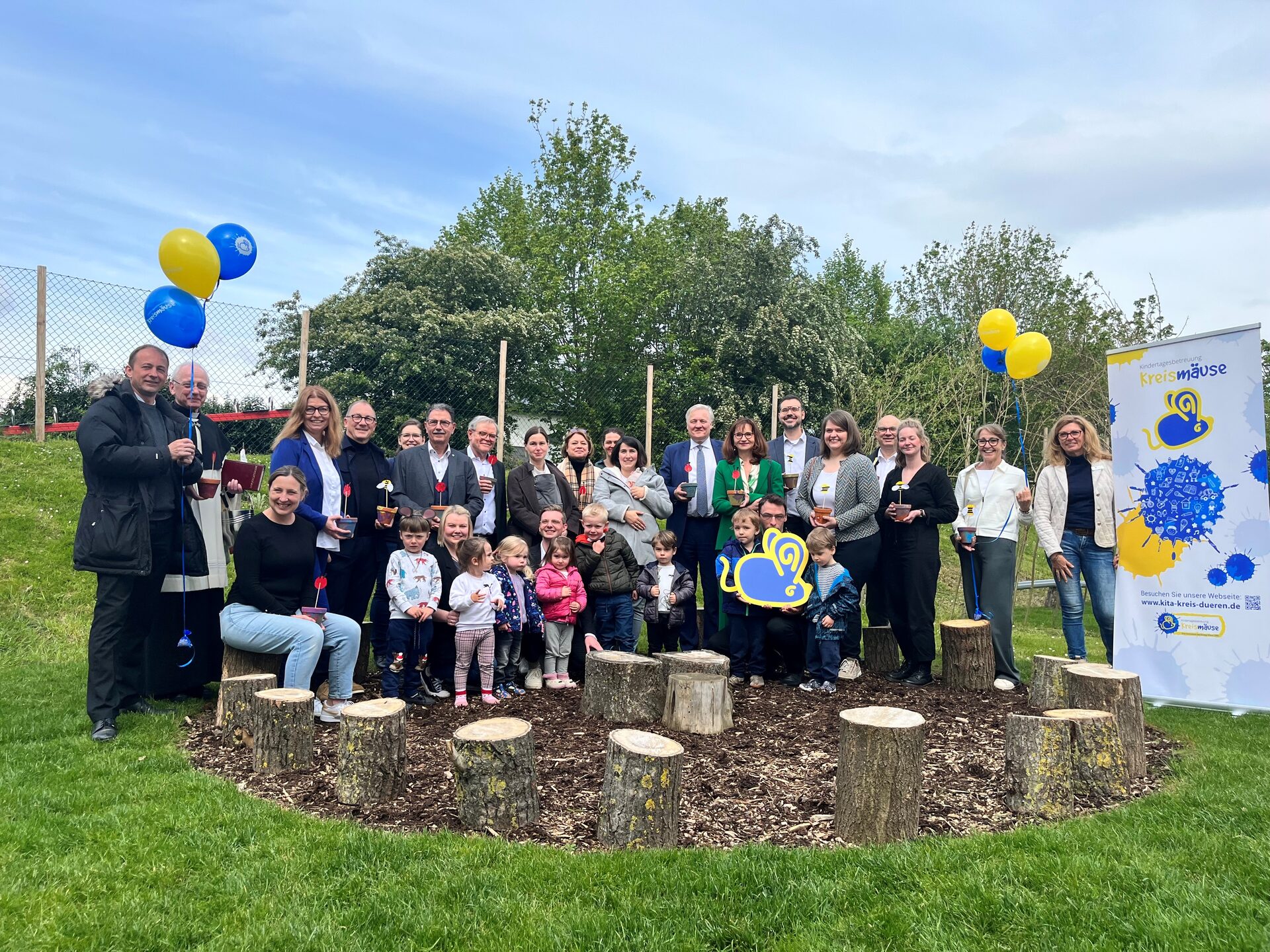 "Unsere Gesellschaft wächst und die Wachstumsoffensive des Kreises Düren zeigt Wirkung, denn bei uns leben inzwischen über 280.000 Menschen. Darunter viele Familien und die geben das Wertvollste, das sie haben, in unsere Hände – ihre Kinder", sagte Landrat Wolfgang Spelthahn bei der offiziellen Einweihung. Begleitet wurde sie von Vertretern der lokalen Politik, Bürgermeister Peter Münstermann, dem Elternbeirat und Pfarrer Stephan Rüssel sowie Pfarrer Daniel Müller Thór. "Es ist uns eine große Freude, den Kindern in Langerwehe-Pier nun diese liebevoll eingerichteten Räumlichkeiten für ihre Entwicklung zur Verfügung stellen zu können, bis wir dann im Neubaugebiet Töpfersiedlung einen Neubau errichtet haben", so Vorstand der Kreismäuse AöR, Christoph Siebertz.