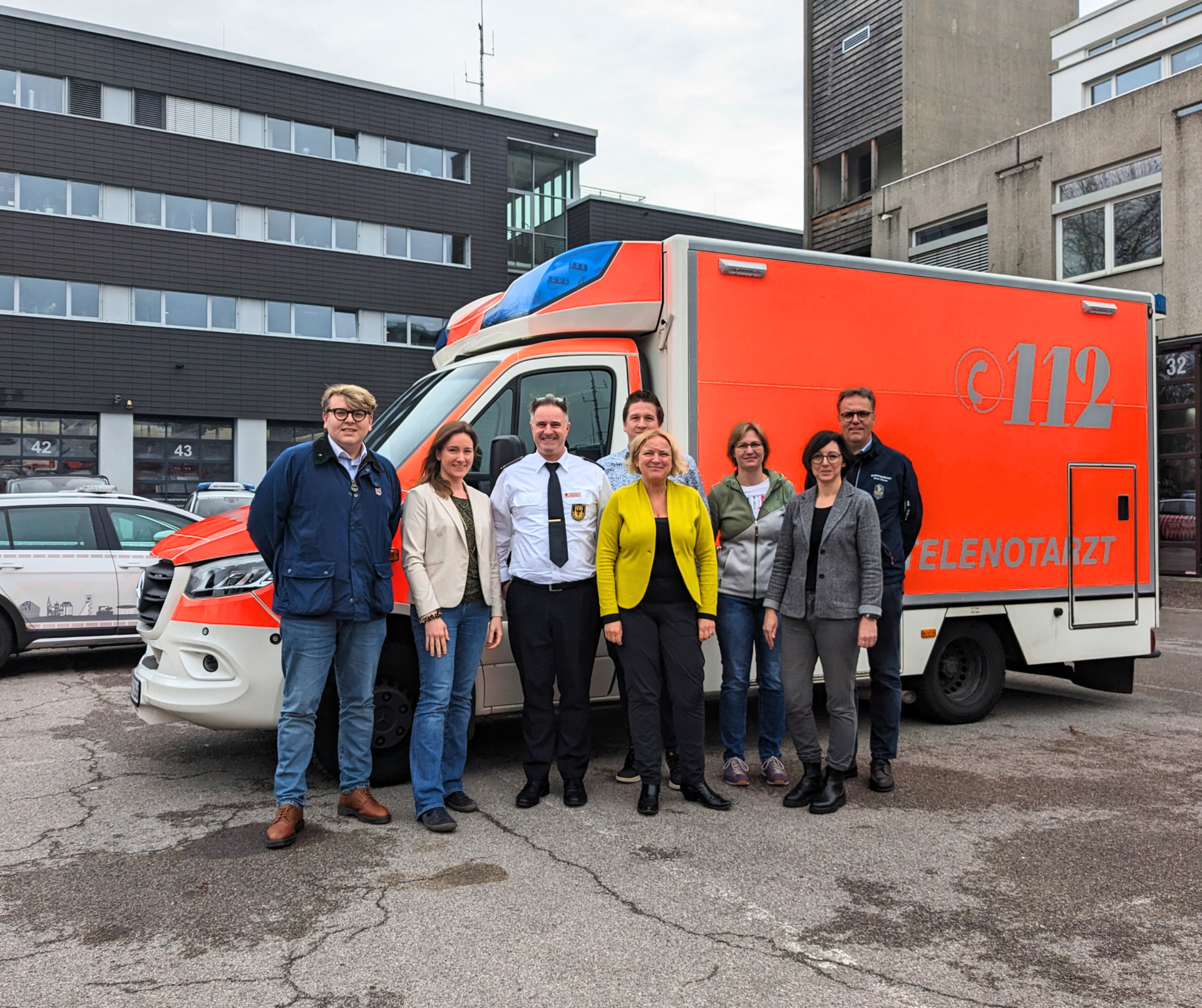 Steuergruppen-Sitzung im Februar 2024, Hauptfeuerwache in Aachen (v.l.): Martin Duske, Diana Mowat, Stefan Wenders, Elke Breidenbach, Simon Schröder, Kerstin Nagel, Silke Roemer, Dr. Detlef Struck.