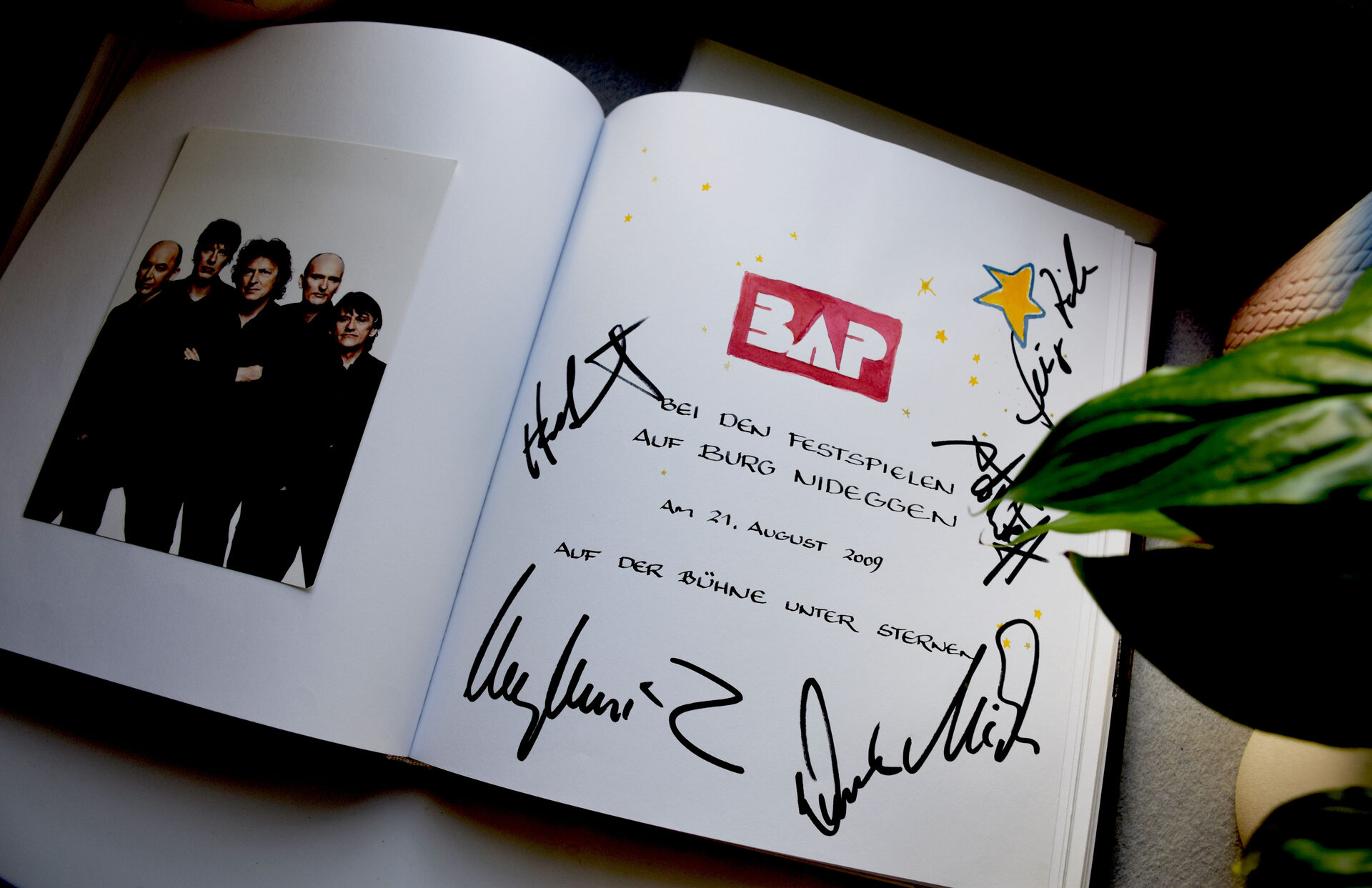 Andere ließen einen lieben Gruß da, ihre Unterschrift oder gleich einen Seiten füllenden Text. Die eine oder andere Autogrammkarte und auch wenige Fotos entdeckt der Leser beim Stöbern. Sie berichten von Konzerten im Brückenkopf-Park Jülich (Yvonne Catterfeld) und auf dem Anna Platz in Düren (Höhner). Und von Kino-Premieren in den Comet Cinemas Düren (Der Clown). Ein Blick hinein lohnt sich in jedem Fall. Und wir sind sicher, dass die Bücher ganz bald erneut mit Leben gefüllt werden, wenn wir wieder zu Veranstaltungen laden können.