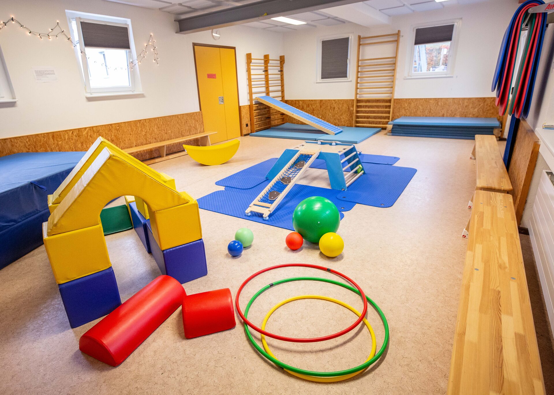 Außerdem finden in der Turnhalle regelmäßig Bewegungsangebote statt und wir gehen regelmäßig in den Wald.