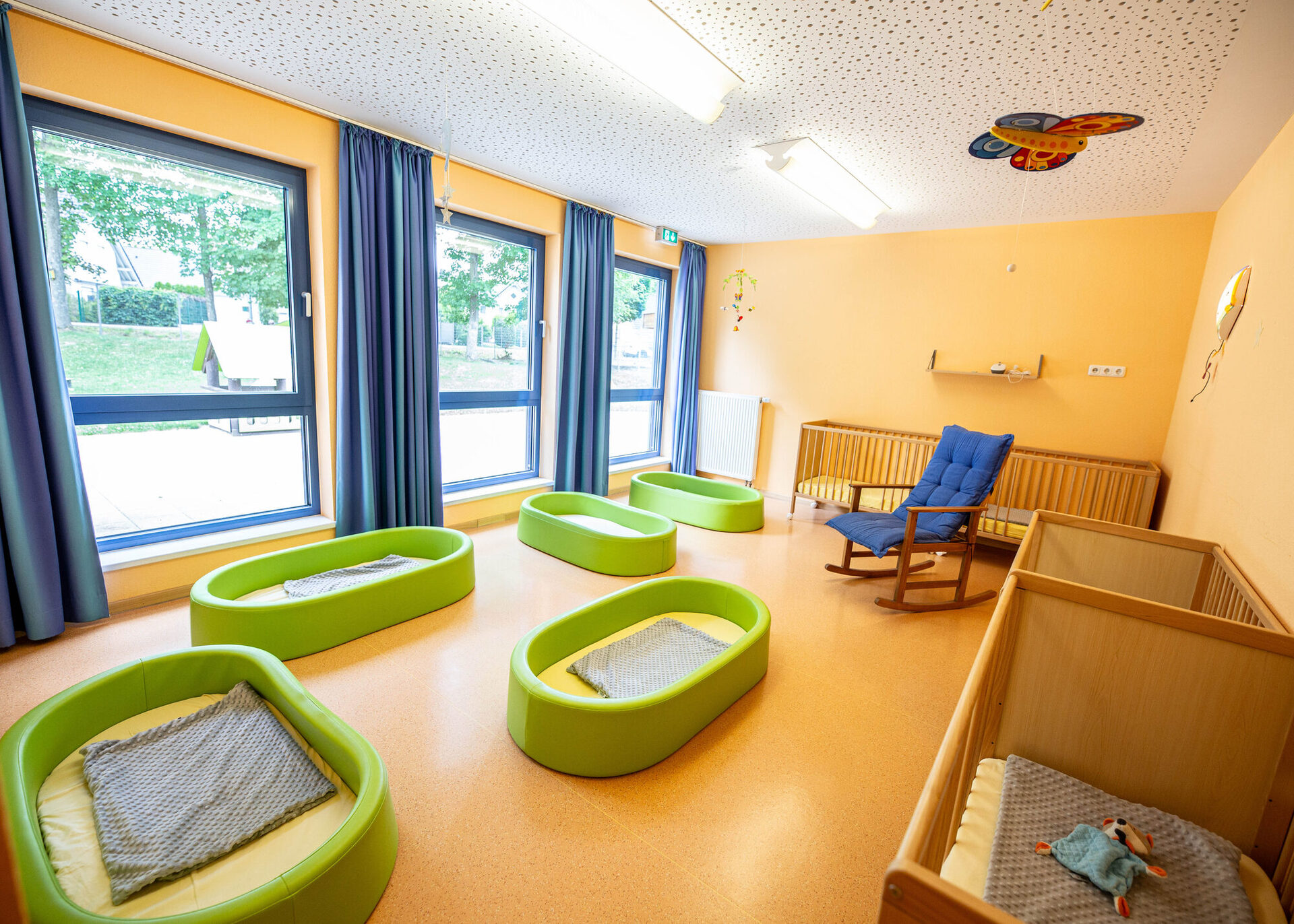 Die 6-gruppige Kindertageseinrichtung liegt im Nordosten der Stadt Jülich und ist in ca. 15 Gehminuten vom Stadtzentrum erreichbar. Es werden insgesamt 104 Kinder im Alter zwischen 4 Monaten und 6 Jahren betreut.