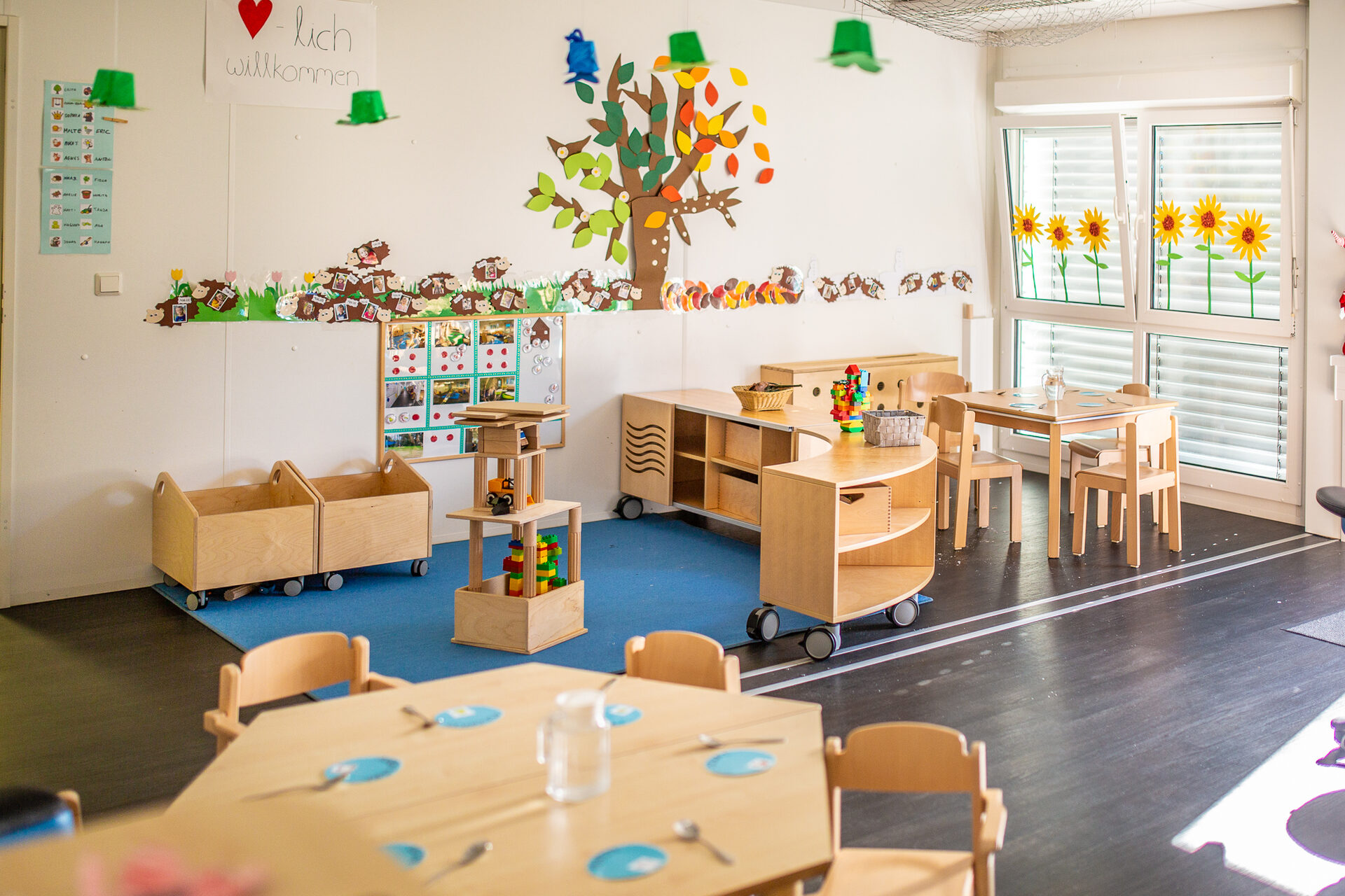 Eine altersgemischte Gruppe ab 1 Jahr bis zur Einschulung sowie eine Gruppe mit Kindern ab 2 Jahren bis zur Einschulung befinden sich in der mobilen Einrichtung. Im Festbau bestehen eine Gruppe mit Kindern ab 3 Jahren und zwei weitere mit Kindern ab 2 Jahren bis zur Einschulung sowie eine Gruppenform mit Inklusion.
