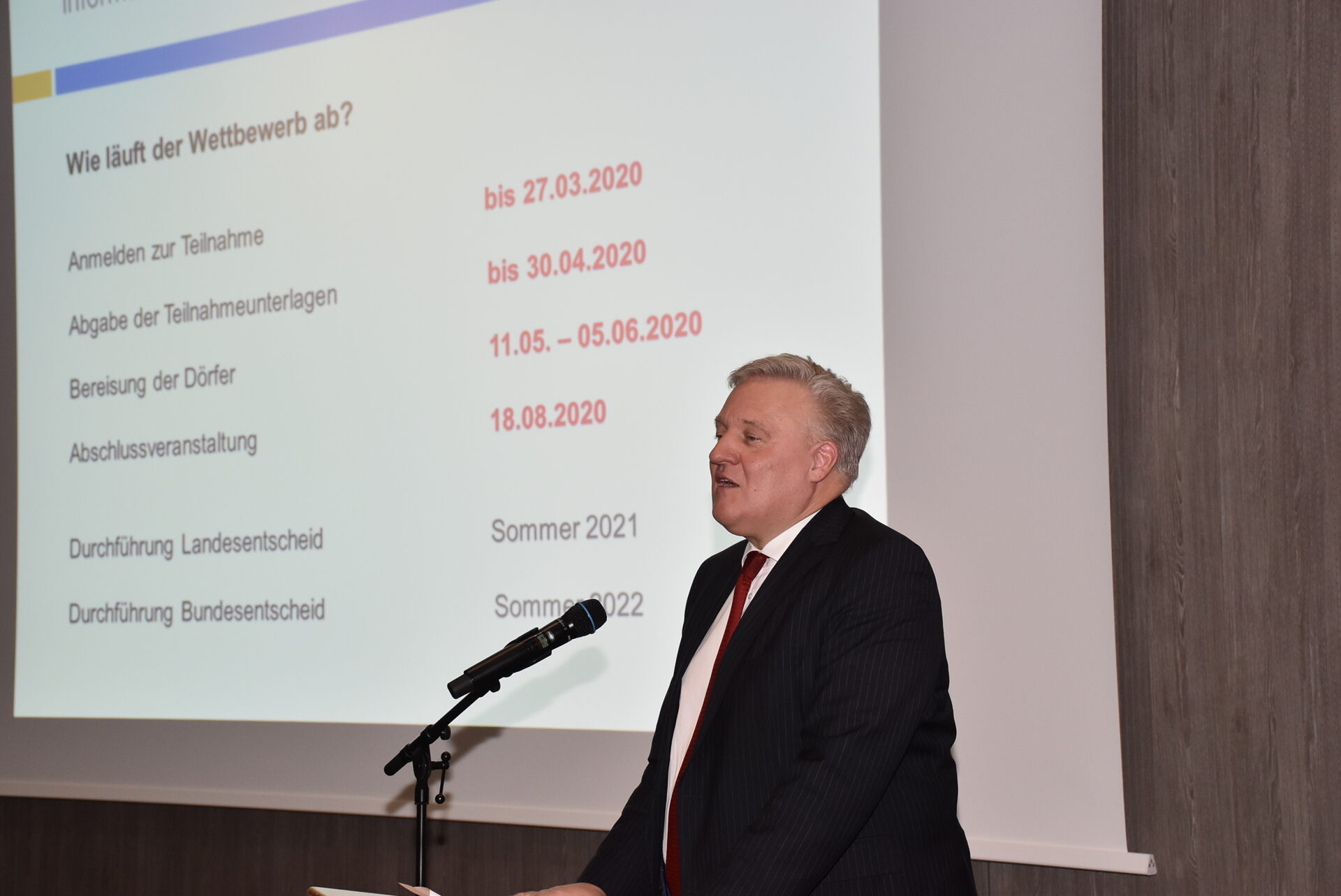 Über 100 Frauen und Männer waren ins Kongresszentrum des Bismarck-Quartiers Düren gekommen, um sich über den Ablauf der Wettstreits zu informieren. "Wir sind die Region mit dem höchsten Zukunftspotenzial in Deutschland", sagte der Landrat mit Blick auf den bevorstehenden Strukturwandel. "Schön, dass Sie alle gekommen sind, um sich mit einer Teamleistung Ihres Dorfes den Herausforderungen der Zukunft zu stellen. Nur so können wir die Chancen nutzen, die sich unserer Region bieten."