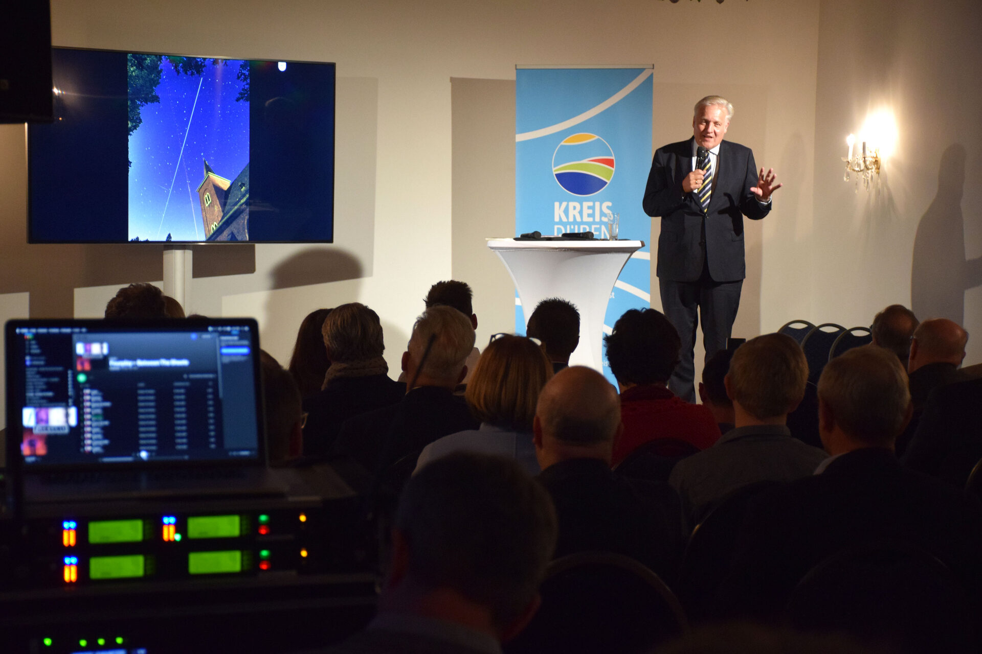 Landrat Wolfgang Spelthahn bei der Buchvorstellung auf Burg Nideggen.