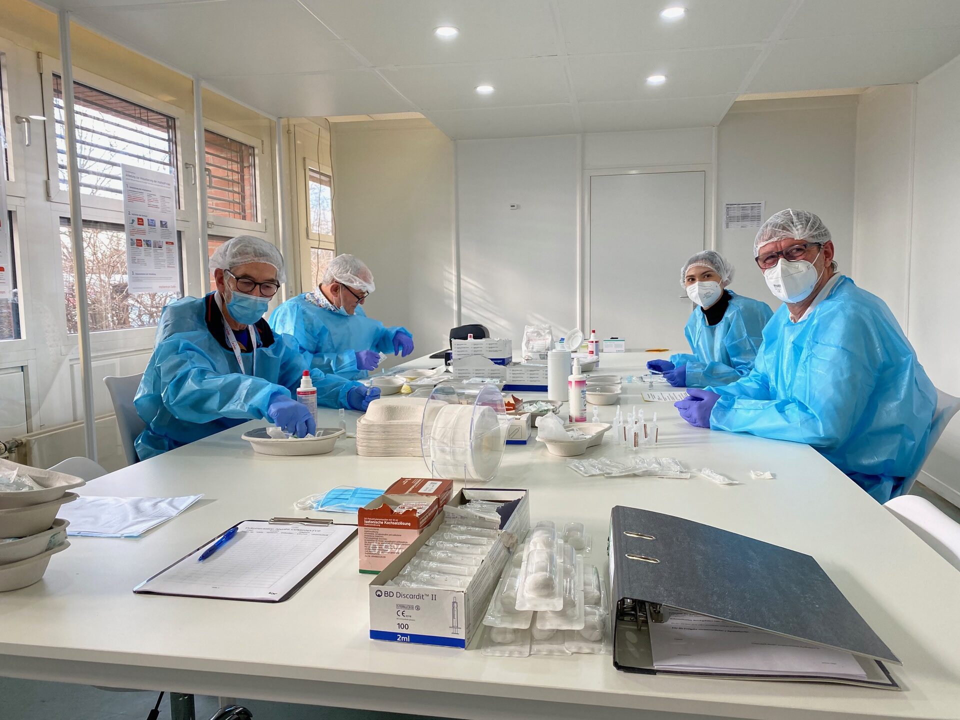Im Impfzentrum des Kreises werden die ersten Impfdosen vorbereitet.