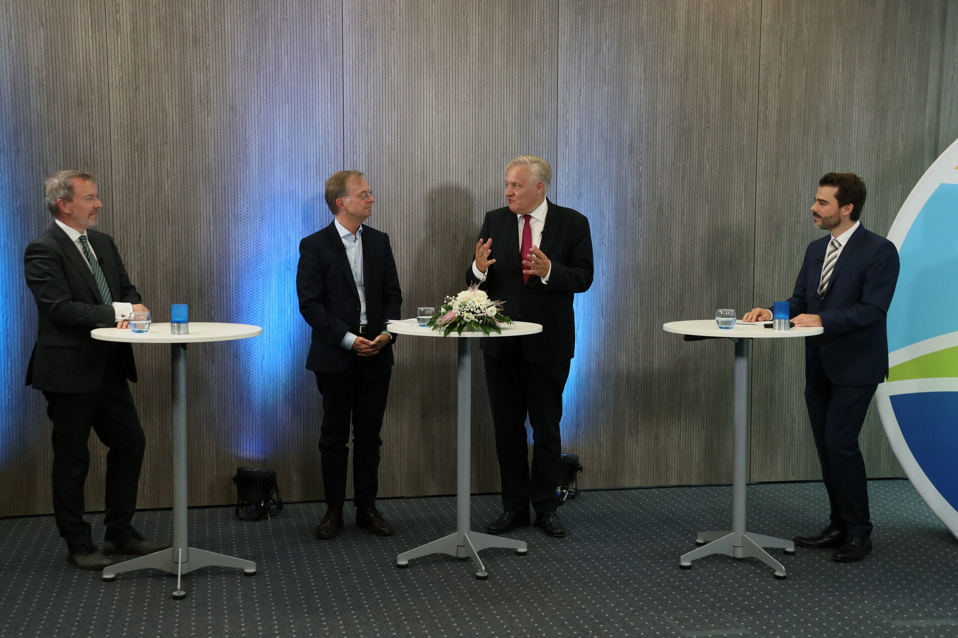 Talk zum Wasserstoff: Babor-Geschäftsführer Horst Robertz, Staatssekretär Thomas Rachel, Landrat Wolfgang Spelthahn und Dr. Martin Robinius (Autor der Studie/ von links)