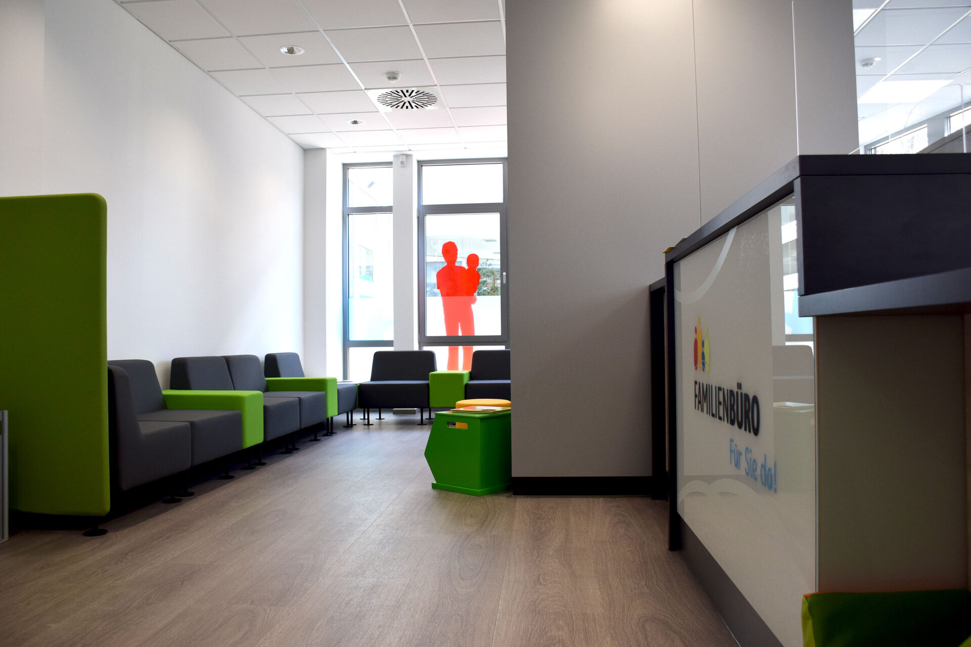 Dank der Förderung des Landes Nordrhein-Westfalen (NRW) im Rahmen des Projektes ,kinderstark – NRW schafft Chancen' finden Besucherinnen und Besucher im Familienbüro neben einem modernen und freundlich gestalteten Wartebereich inklusive Spielecke für Kinder auch einen Wickeltisch und einen Stillstuhl, der es stillenden Müttern oder Fläschchen gebenden Eltern ermöglicht, ihr Kind in Ruhe zu füttern. "Uns war der Wohlfühlcharakter besonders wichtig, daher ist alles hell und freundlich gestaltet und doch gibt es Rückzugsmöglichkeiten für Eltern mit kleinen Kindern", so Ricken-Melchert.