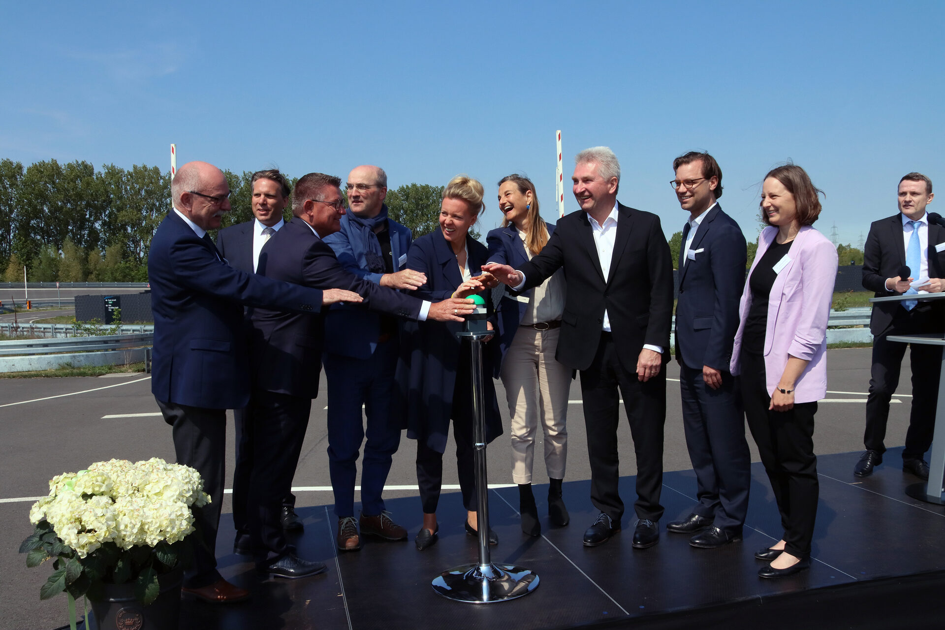 Das erste autonom startende Flugobjekt wurde heute per Knopfdruck in den Himmel geschickt. Wie zu erwarten war, klappten Start und Landung reibungslos. Nur wenige Meter vom Startplatz entfernt sahen die Gäste die Teststrecke des ATC, auf der das eine oder andere Auto entlangbrauste. Am ATC wird seit Jahren am autonomen Fahren geforscht, nun also, gleich in der Nachbarschaft, auch am autonomen Fliegen.