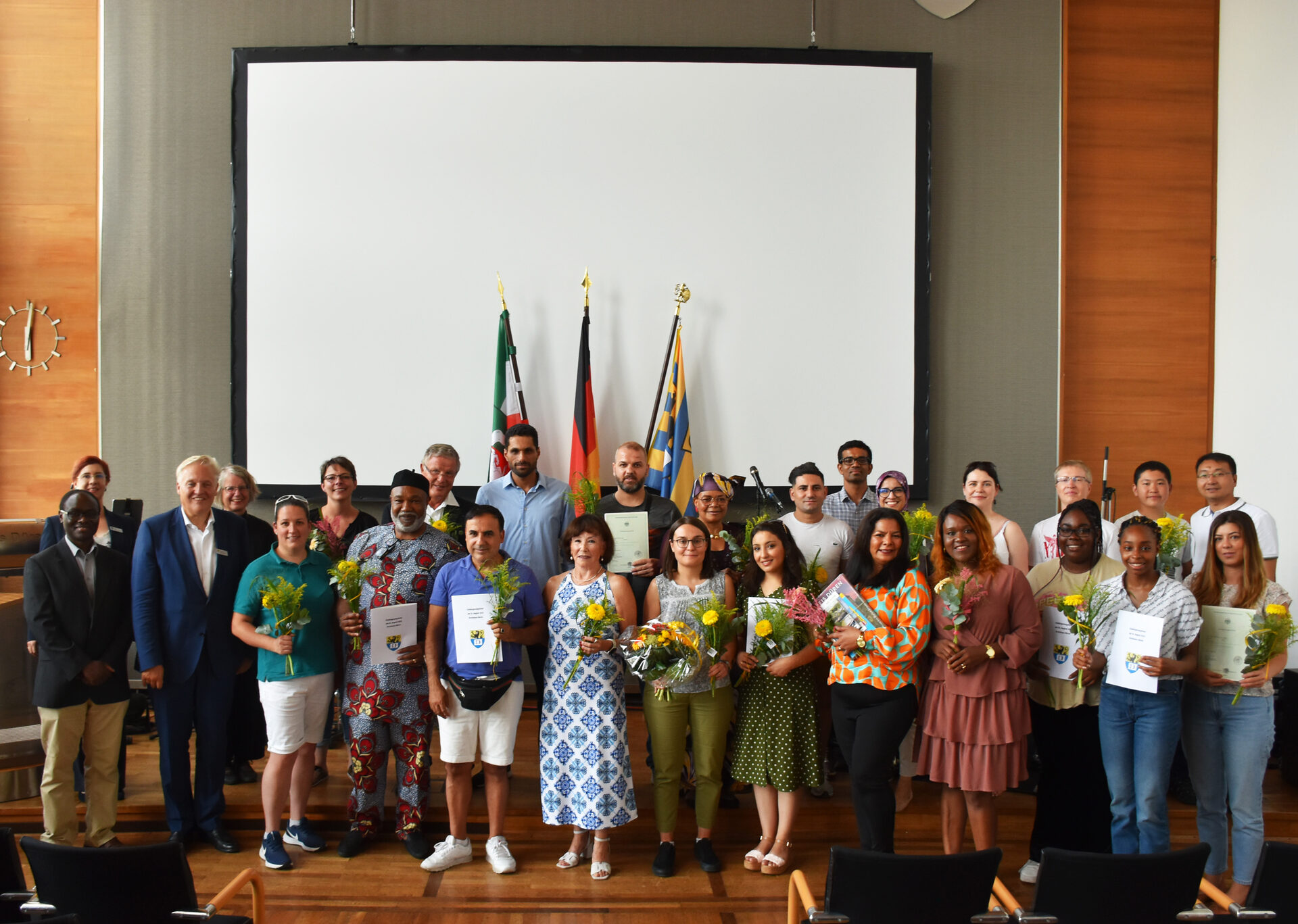 Er überreichte die Urkunden an diejenigen, die seit Mitte des vergangenen Jahres eingebürgert wurden. Insgesamt erhielten seitdem 184 Menschen aus dem Kreis Düren die deutsche Staatsbürgerschaft, 23 Personen waren bei der Einbürgerungsfeier anwesend und nahmen die Urkunde vor Freunden und Familie entgegen.