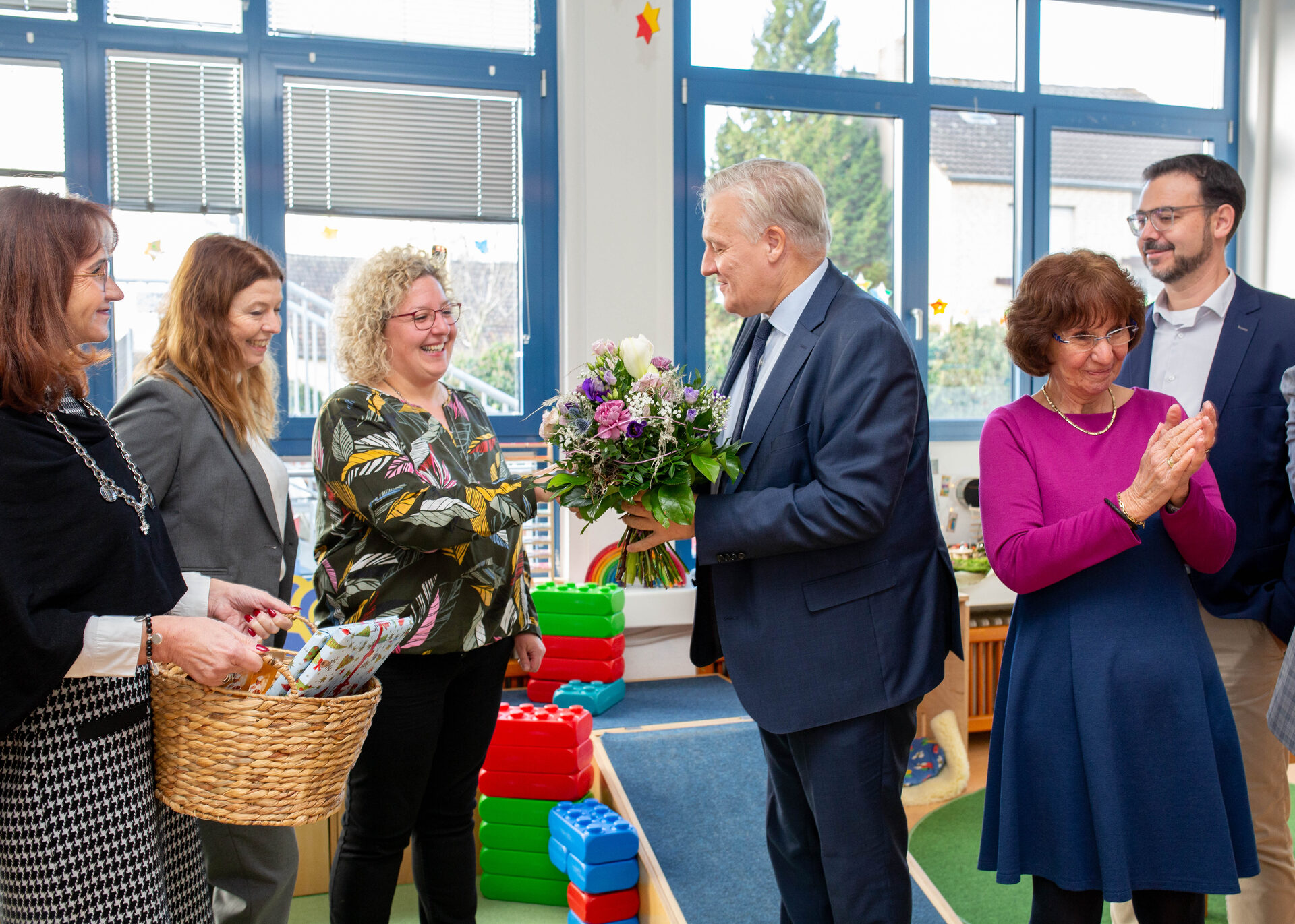"Herzlichen Glückwunsch zu dieser Nominierung. Sie zeigt einmal mehr, wie hochwertig und exzellent die Pädagogik und Kinderbetreuung hier ist. Ich wünsche Ihnen weiterhin viel Erfolg, sie hätten die Auszeichnung mehr als verdient", sagte Landrat Spelthahn, als er der Kita-Leiterin Stefanie Kleinermanns und ihrem Team vor Ort persönlich zu der Nominierung gratulierte.