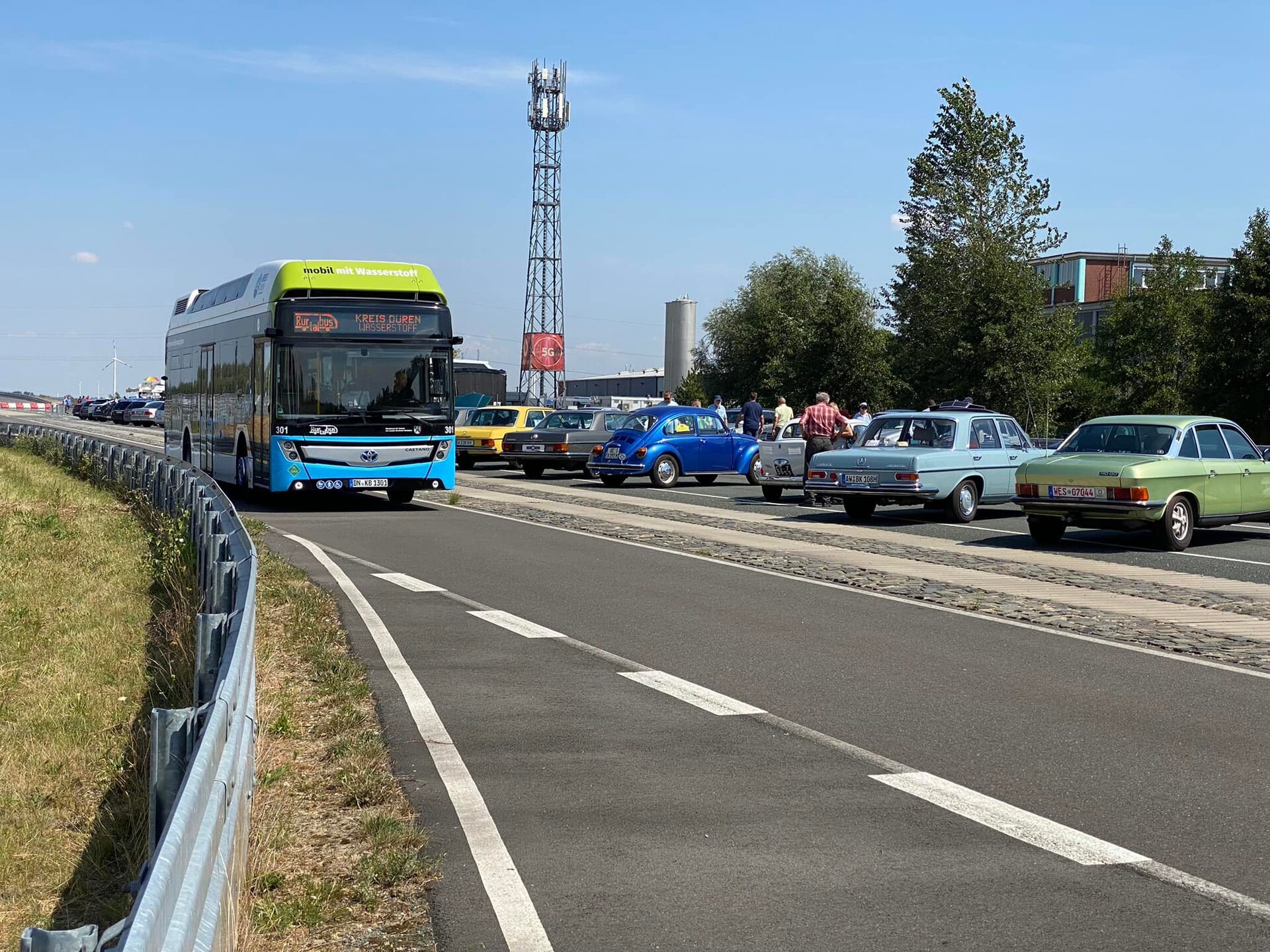 An zahlreichen Stationen erhielten sie einen Einblick, wie die Zukunft der Mobilität und des Verkehrs aussehen wird. Dabei spielt der Wasserstoff eine wichtige Rolle. Die und 1000 Besucherinnen und Besucher konnten in den Wasserstoffbussen schnelle Runden über das Testgelände drehen und dabei die steilen Kurven erfahren, die sonst nur zu Forschungszwecken befahren werden. Auch Landrat Wolfgang Spelthahn drehte unter anderem gemeinsam mit NRW-Verkehrsminister Oliver Krischer, Prof. Dr. Dirk Abel von der RWTH Aachen sowie Anette Winkler, Geschäftsführerin am ATC und Leiterin der Wirtschaftsförderung des Kreises Düren, eine Runde über das Gelände. "Mobilität ist in unserer heutigen Zeit ein wichtiger Schlüssel in Hinblick auf den Klima-, aber auch den Strukturwandel. Wie Forschung und Praxis daran arbeiten, wollen wir mit diesem Tag zeigen", sagte Landrat Wolfgang Spelthahn.