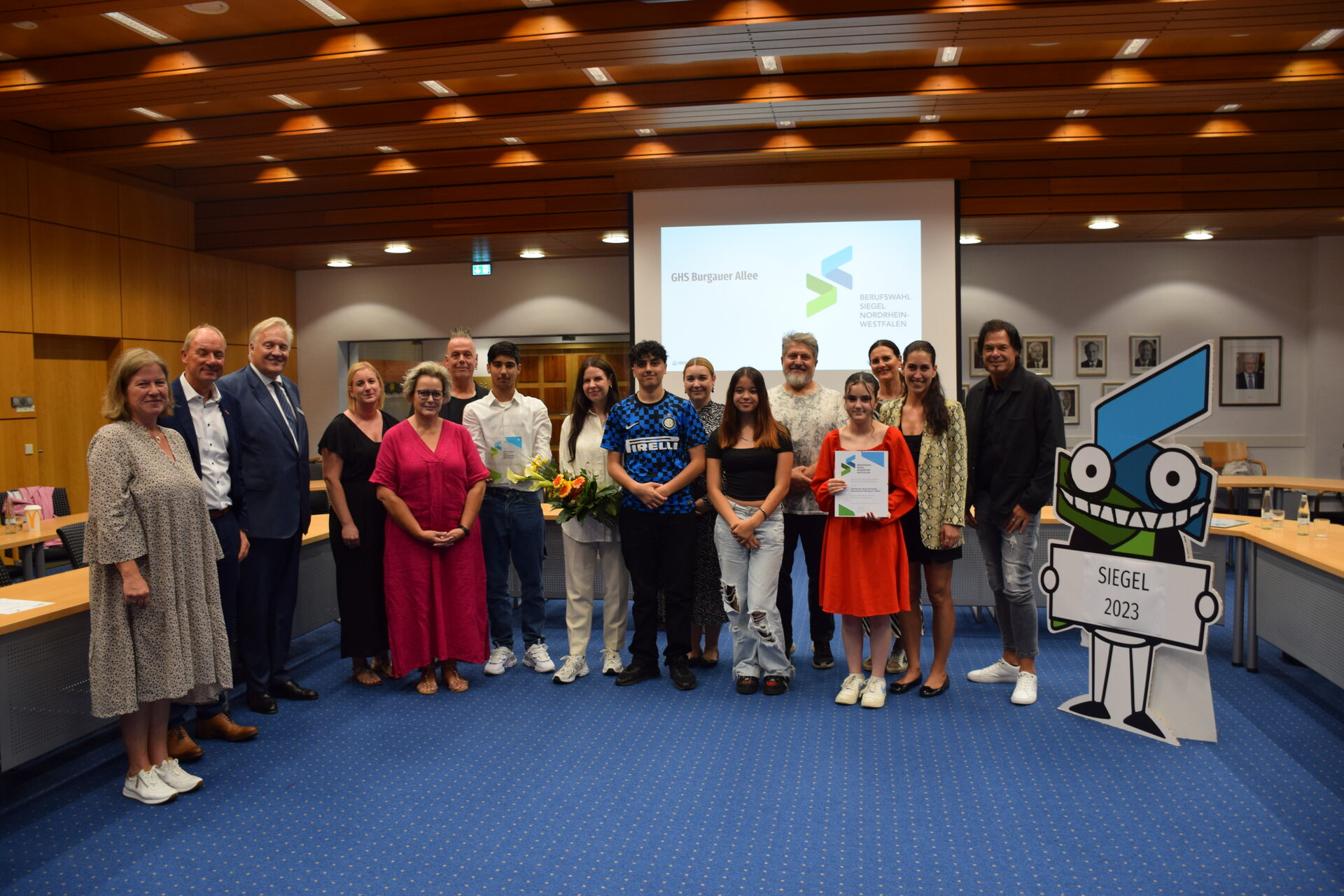 Die GHS Burgauer Allee wurde von Landrat Wolfgang Spelthahn (3.v.l.) mit dem Berufswahlsiegel ausgezeichnet.