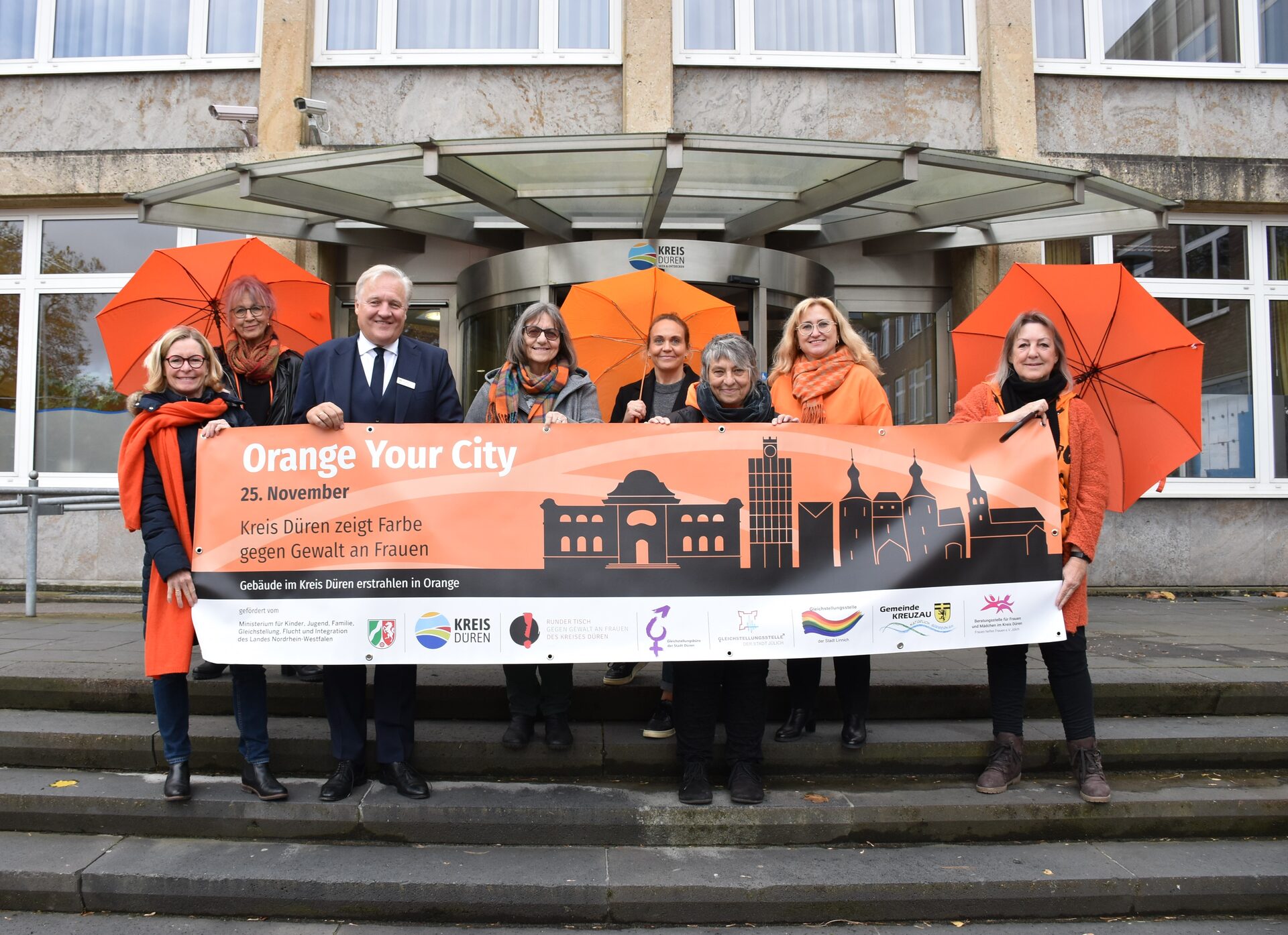 An diesem Tag werden unter dem Motto "Orange Your City" (übersetzt: Färbe deine Stadt orange) auf der ganzen Welt deutliche Signale gesetzt – so auch im Kreis Düren. Die auffällige Farbe Orange ist an die Kampagnenfarbe der Organisation "UN Women" (englisch: United Nations Entity for Gender Equality and the Empowerment of Women, zu Deutsch: Einheit der Vereinten Nationen für Gleichstellung und Ermächtigung der Frauen) angelehnt.
