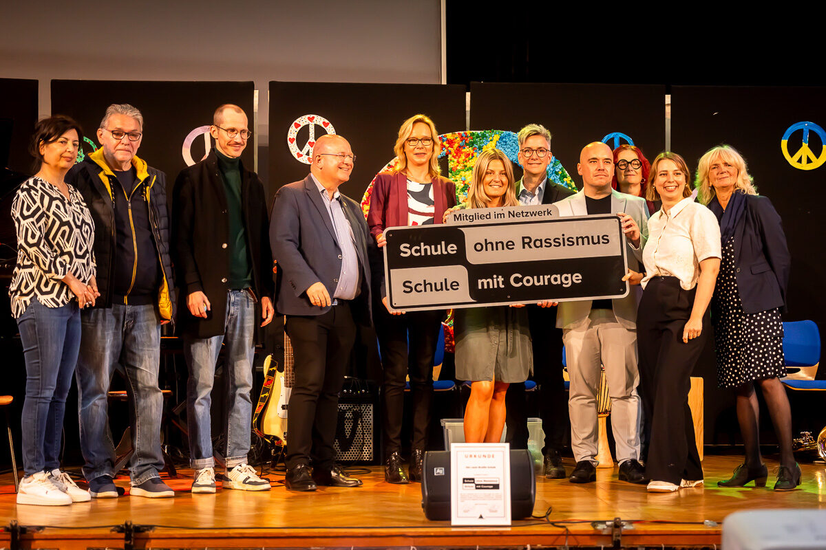 Mit der Aufnahme verpflichten sich die Schule, sowie alle Schülerinnen und Schüler, sich aktiv gegen Diskriminierung und insbesondere Rassismus einzusetzen. Deutlich wird dies auch ab sofort mit einem Logo-Schild, das der Schule vom Kommunalen Integrationszentrum bei einem Festakt überreicht wurde. Das Schild wird jetzt sichtbar an der Schulwand befestigt. Schulpate des Projektes ist der Jugendbuch-Autor Tobias Steinfeld.