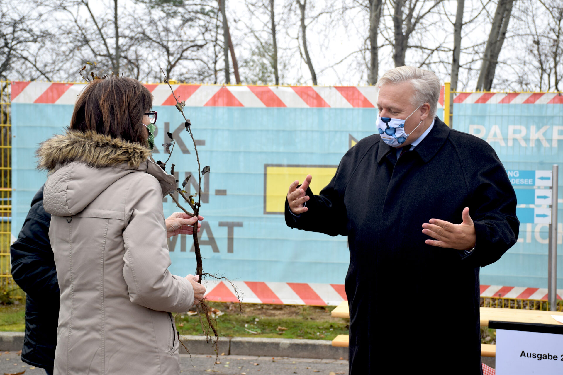 Die Laubbäume werden über das Klimaschutzprogramm des Kreises Düren finanziert und den Bürgerinnen und Bürgern kostenfrei zur Verfügung gestellt. Sie hatten nun die Gelegenheit, die bis zu fünf beantragten Bäume inklusive Pflanzanleitung abzuholen. An drei Ausgabestellen wurden die Pflanzen unter Corona-Bedingungen verteilt. Das weitläufige Rondell am Badesee bot die Möglichkeit, in einem Einbahnstraßen-System eine der Ausgabestationen anzufahren, die Bäume einzuladen und wieder abzufahren.