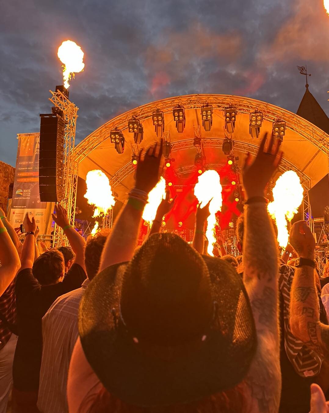 The BossHoss haben Feuer mit nach Nideggen gebracht und spielten Country-Rock vom Feinsten. Auf der Bühne in historischer Kulisse feiern sie ihr 20-jähriges musikalisches Bestehen und gleichzeitig Tourabschluss! Das wollte mit einer ordentlichen Party gewürdigt werden! Stillstand und Pause im Publikum haben keine Chance. Es wird getanzt, gesungen und durchgerockt. Zwischendurch ergänzten noch Stage Diving von einem oberkörperfreien Alec Völker, von rechts nach links hüpfende Fans und ein ohne Pause springendes Publikum einen der energiereichsten Abende in der Geschichte der "Bühne unter Sternen".