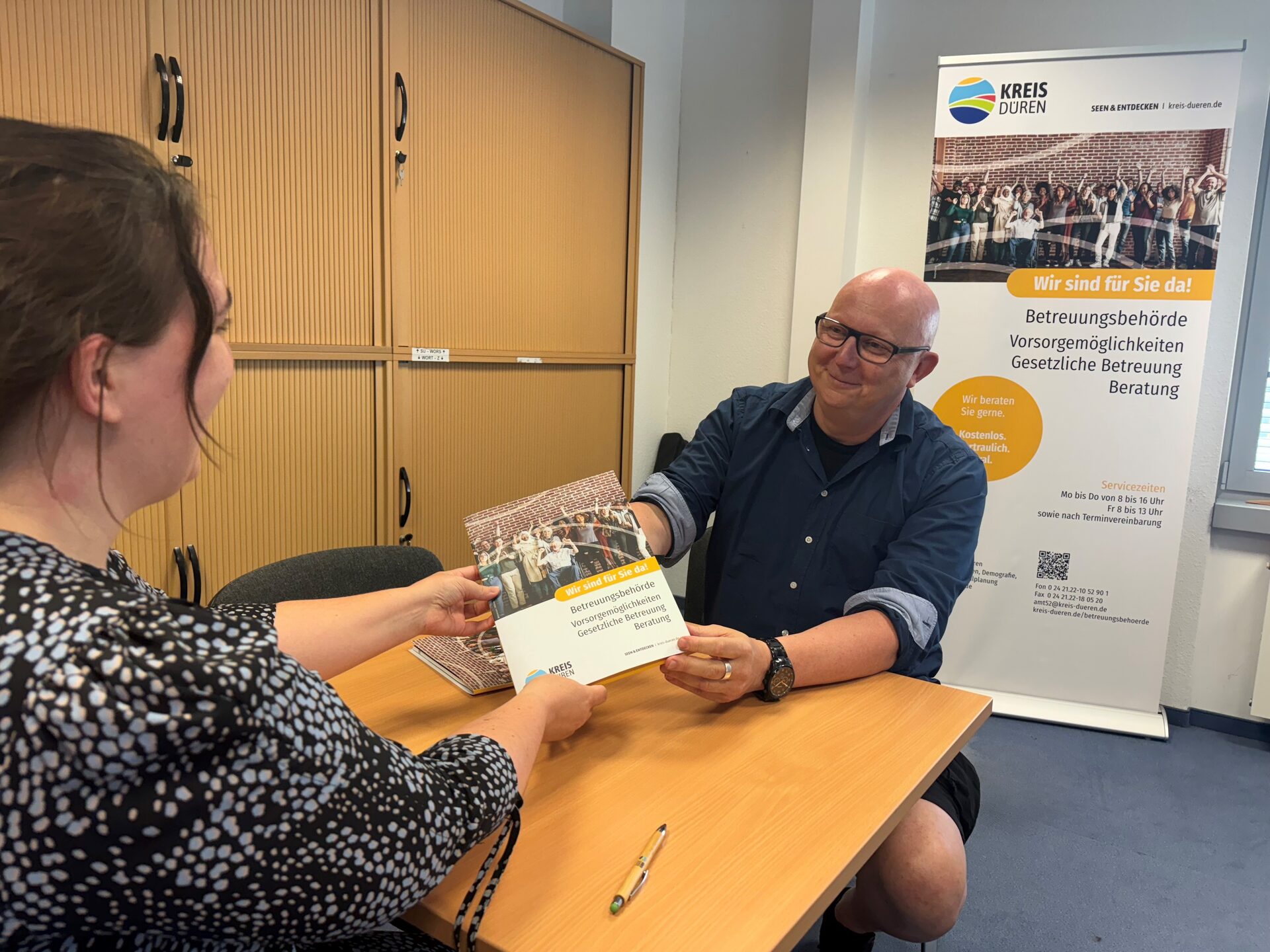 Oft sind es die Angehörigen, die sich bereit erklären. In vielen Fällen werden aber auch ehrenamtliche oder beruflich Betreuende, also fremde Menschen, bestellt. Die Betreuungsbehörde des Kreises Düren hilft hier weiter. Im besten Fall entscheidet jeder Mensch im Vorfeld, wer im Fall der Fälle die eigenen rechtlichen Interessen vertreten soll. „Wir beraten gerne über die Vorsorgemöglichkeiten und empfehlen allen Menschen ab 18 Jahren, sich mit einer Vollmachtserteilung auseinanderzusetzen. Eine gültige Vollmacht hat immer Vorrang vor einer rechtlichen Betreuung”, sagt Stefan Schnee von der Betreuungsbehörde des Kreises Düren. „Unser oberstes Ziel ist es, dass eine rechtliche Betreuung durch das Amtsgericht vermieden wird, wobei grundsätzlich der Wunsch der Menschen und deren Vorstellungen im Vordergrund stehen!“