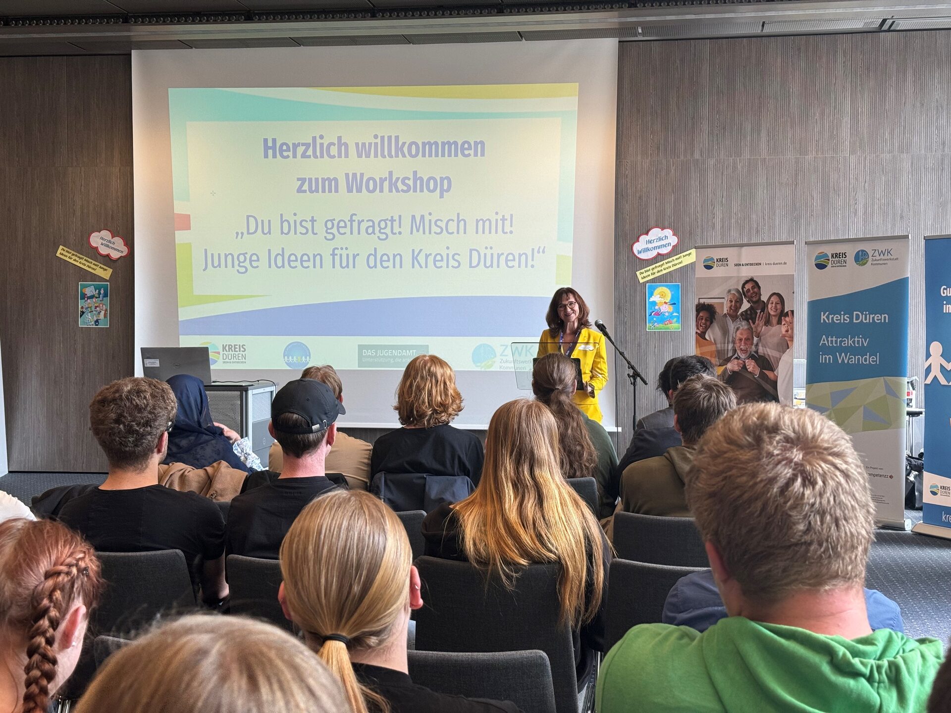 "In der heutigen Zeit ist es wichtiger denn je, Jugendliche zu beteiligen, ihre Meinung zu hören und ihnen die Chance zu geben, sich aktiv bei Entscheidungen einzubringen", sagt Elke Ricken-Melchert, Dezernentin für Jugend und Soziales. Sie begrüßte die rund 60 Anwesenden bei dem Workshop im Bismarck Quartier in Düren.