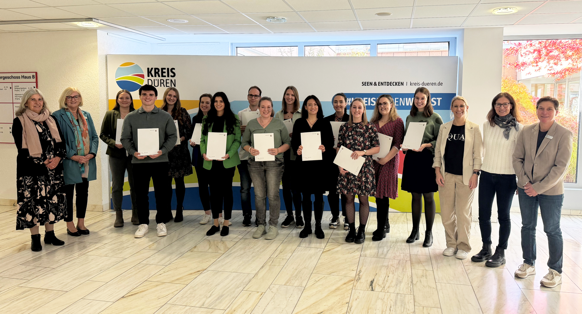 Im November starten die motivierten Lehrkräfte an vielen unterschiedlichen Schulen im Kreisgebiet. „Wir freuen uns über jede Lehrerin und jeden Lehrer. Sie haben einen langen Weg hinter sich und ich wünsche Ihnen alles Gute“, sagt Beatrix Wollgarten, Schulaufsichtsbeamtin. Im Kreis Düren ist die Dienst- und Fachaufsicht für Grundschulen angesiedelt. Die Vereidigung der Lehrkräfte erfolgte im Nachgang am ersten Schultag im November.